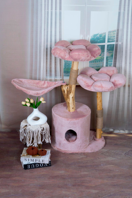 این درخت گربه با طراحی منحصر به فرد گلصورتی و پایههای چوبی طبیعی، فضایی جذاب و راحت برای گربههای شما فراهم میآورد. از لایههای نرم برای استراحت گرفته تا سطحهای بلند برای بالا رفتن و مشاهده محیط، این محصول هر آنچه که یک گربه نیاز دارد را ارائه میدهد.